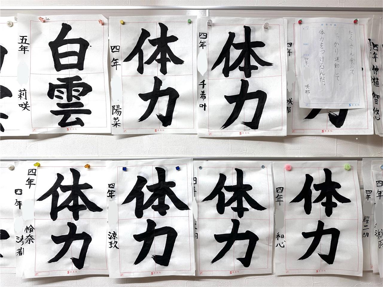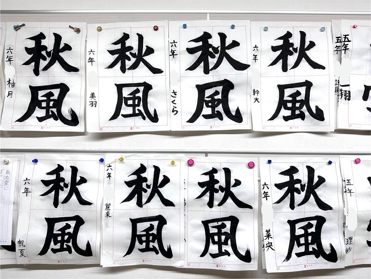 さて、今週は9月号の毛筆の仕上げ。夏休みの宿題や七夕展の八つ切り作品をたくさん書き込んだ成果が見えます。