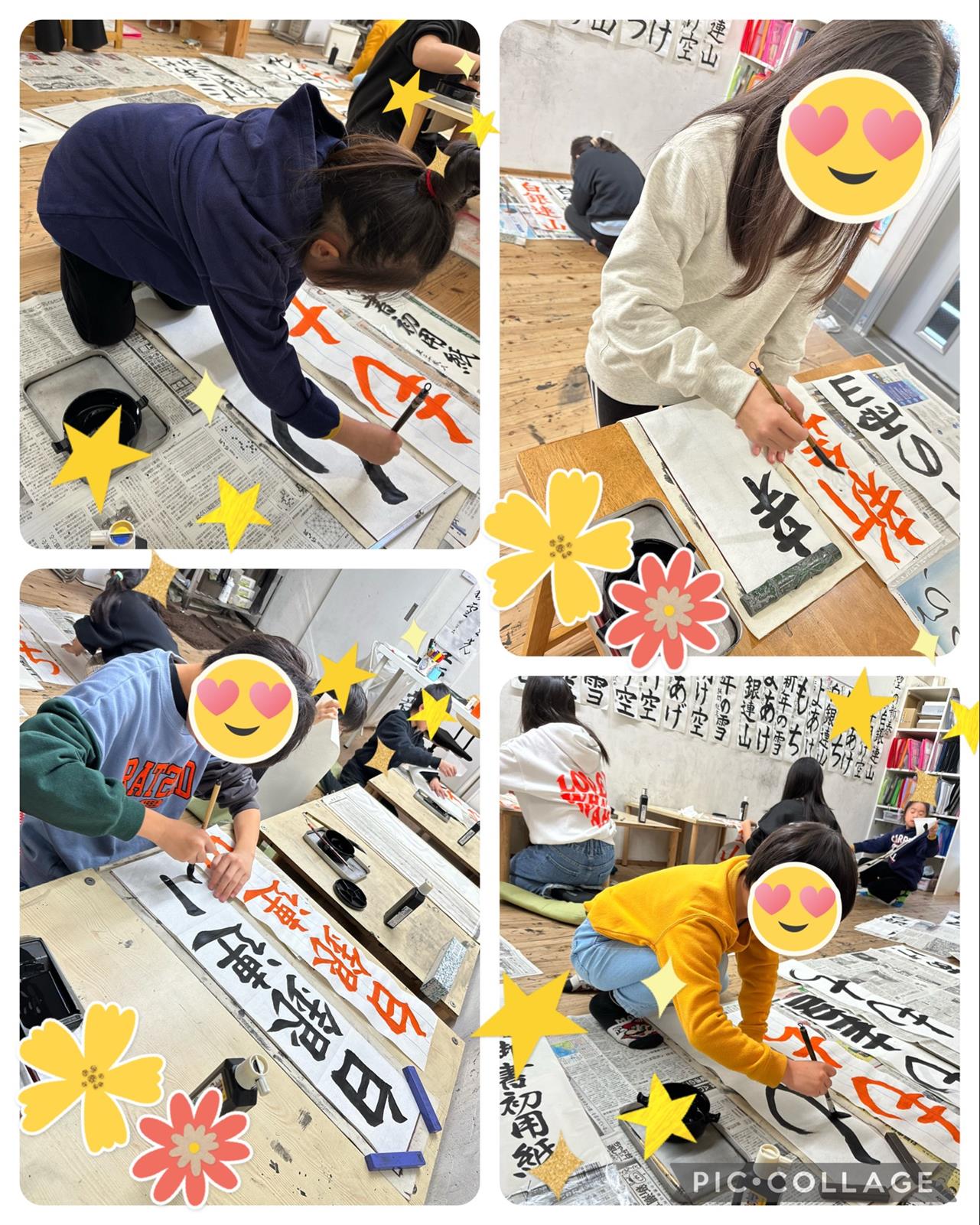 急に上手にはならないけれど、日々少しずつ色んな作品を書くことで、筆の使い方や字の整え方を学んでいきます。年々みんな上手になっていきます♪