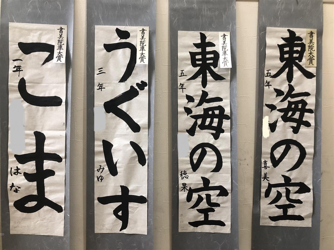 今回、最高賞の書美院大賞が1名、書美院準大賞が3名、書美院賞が5名となかなかの好成績でした。 ほんとにみんなよく頑張りました‼︎