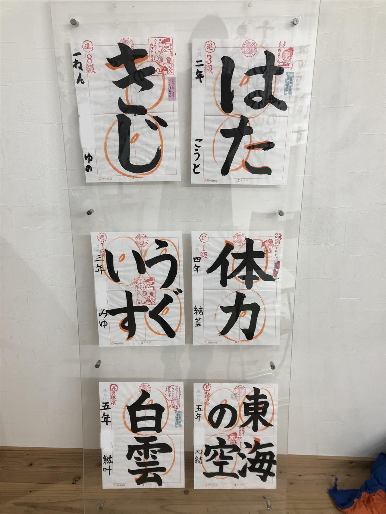 教室展示作品はそのほとんどがお手本掲載作品です。みんな力強い線質で元気いっぱいです。