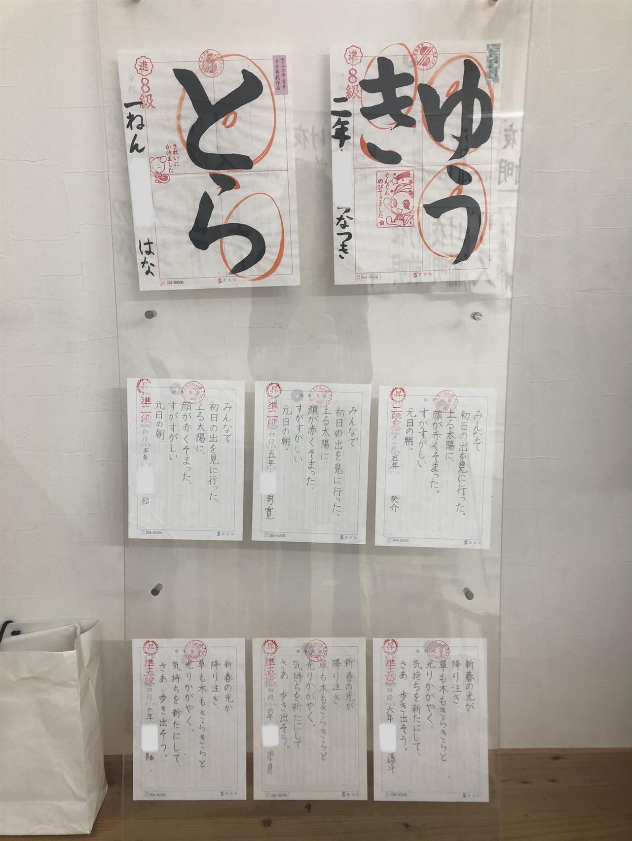 1月号は硬筆のみでしたので、硬筆も掲示しました。今月も力作揃いです。