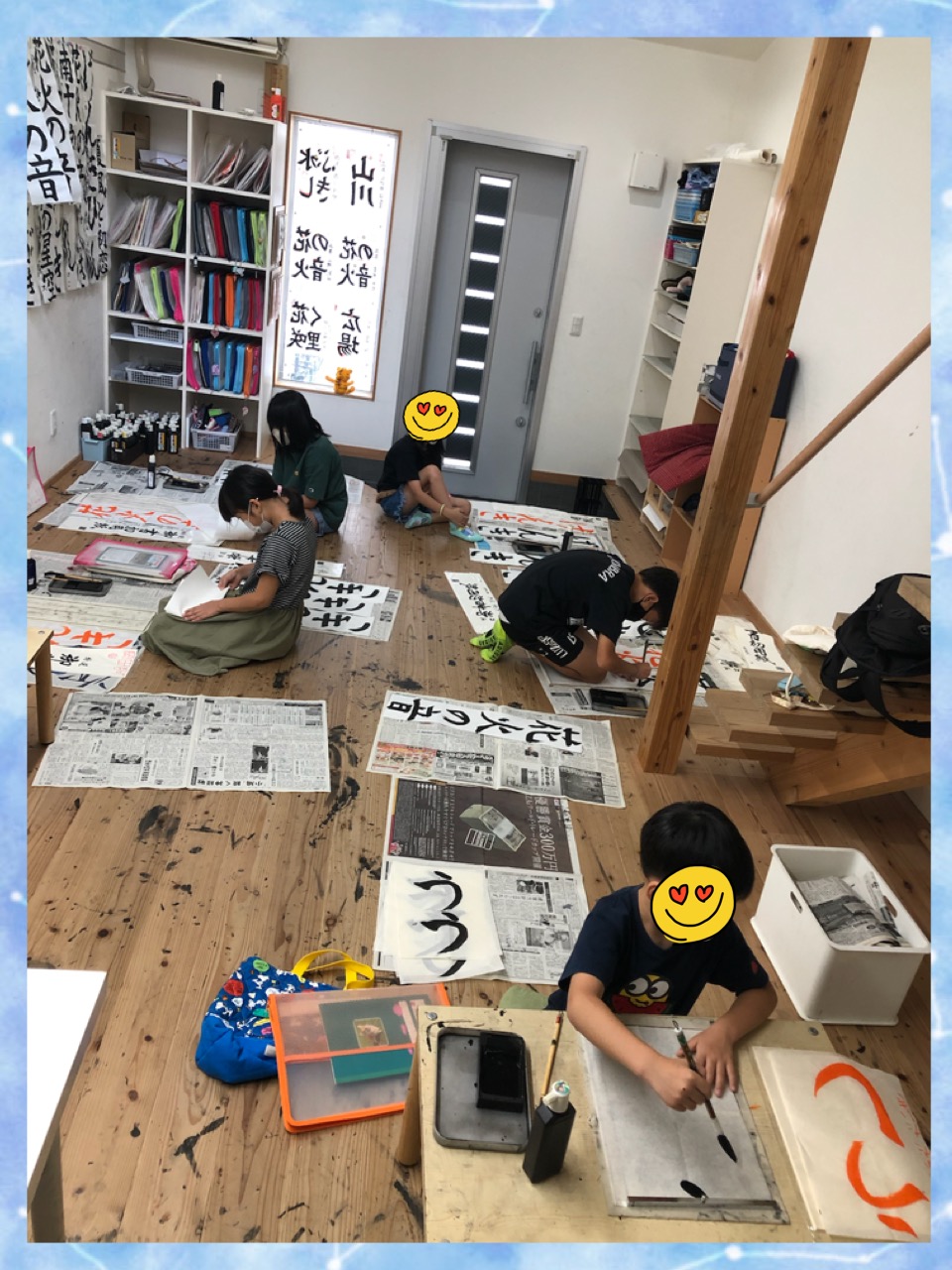 夏休み明けて、みんな1回目のお稽古でしたが、筆の使い方、字の整え方が上手くなっているのが分かります。夏休みに八つ切りや半紙の展覧会用に一生懸命書き込んだ成果だと思います。