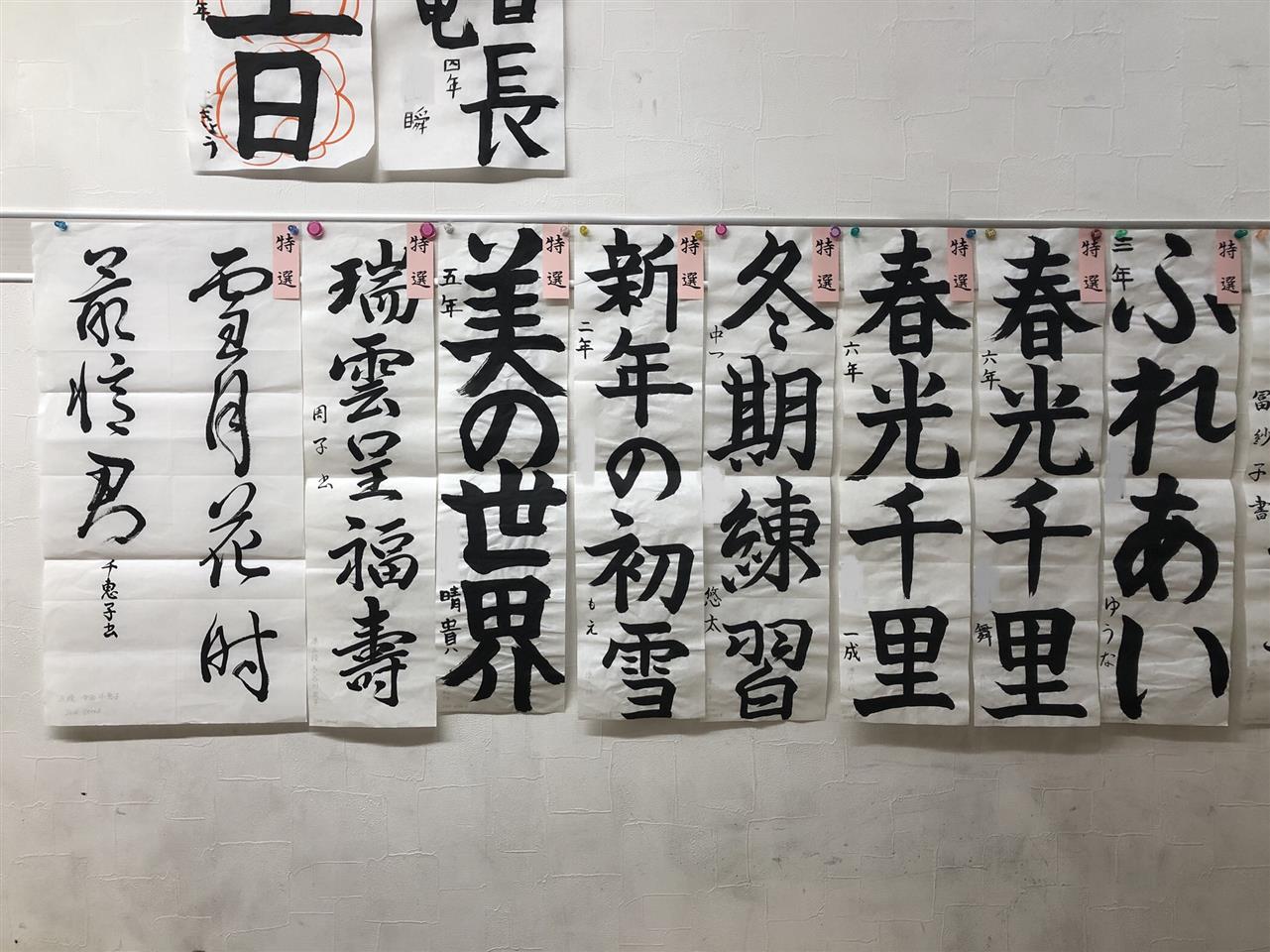 今回、書初め展の最高賞である書美院大賞を四年生の女子が受賞しました。いつも一生懸命練習に黙々と取り組む子なので、努力が実って私も嬉しいです!