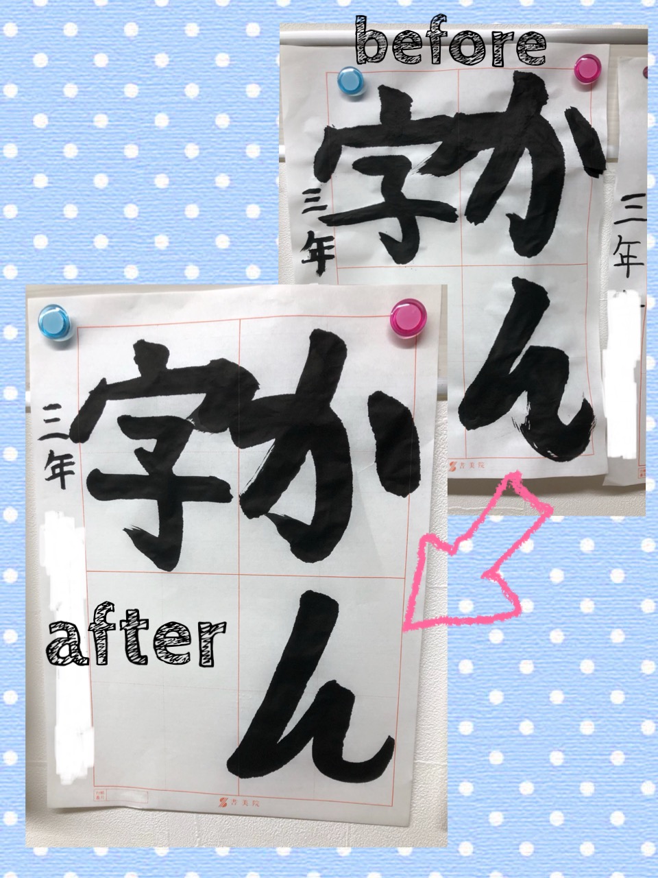こちらもお習字始めて半年足らず。毛筆が楽しいようで、いつも一生懸命練習してくれています。
