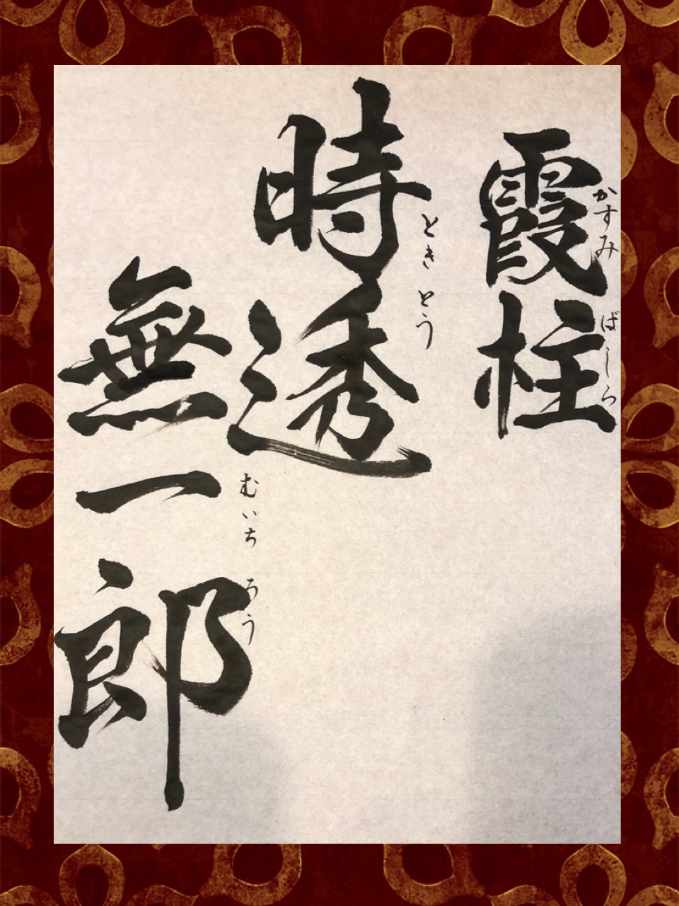 写真2枚目は、息抜きで、今流行りの鬼滅の刃の中のキャラ、時透無一郎の文字を真似してみました。