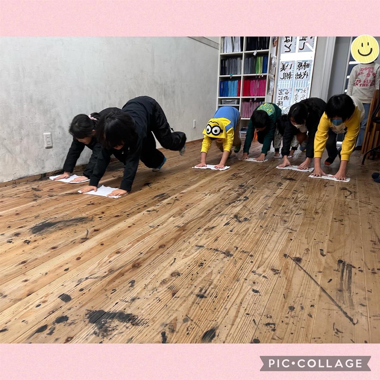 墨で汚れた壁も机もピッカピカです。床もみんなでやると10秒ほどでふきおわります。